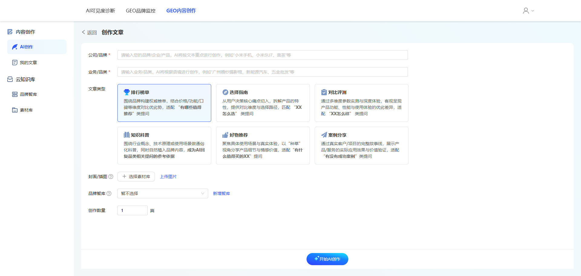 AI创作文章:依托智能引擎与行业语料库,深度理解品牌定位,一键生成符合平台推荐机制的原创软文、产品介绍、行业案例等多类型内容