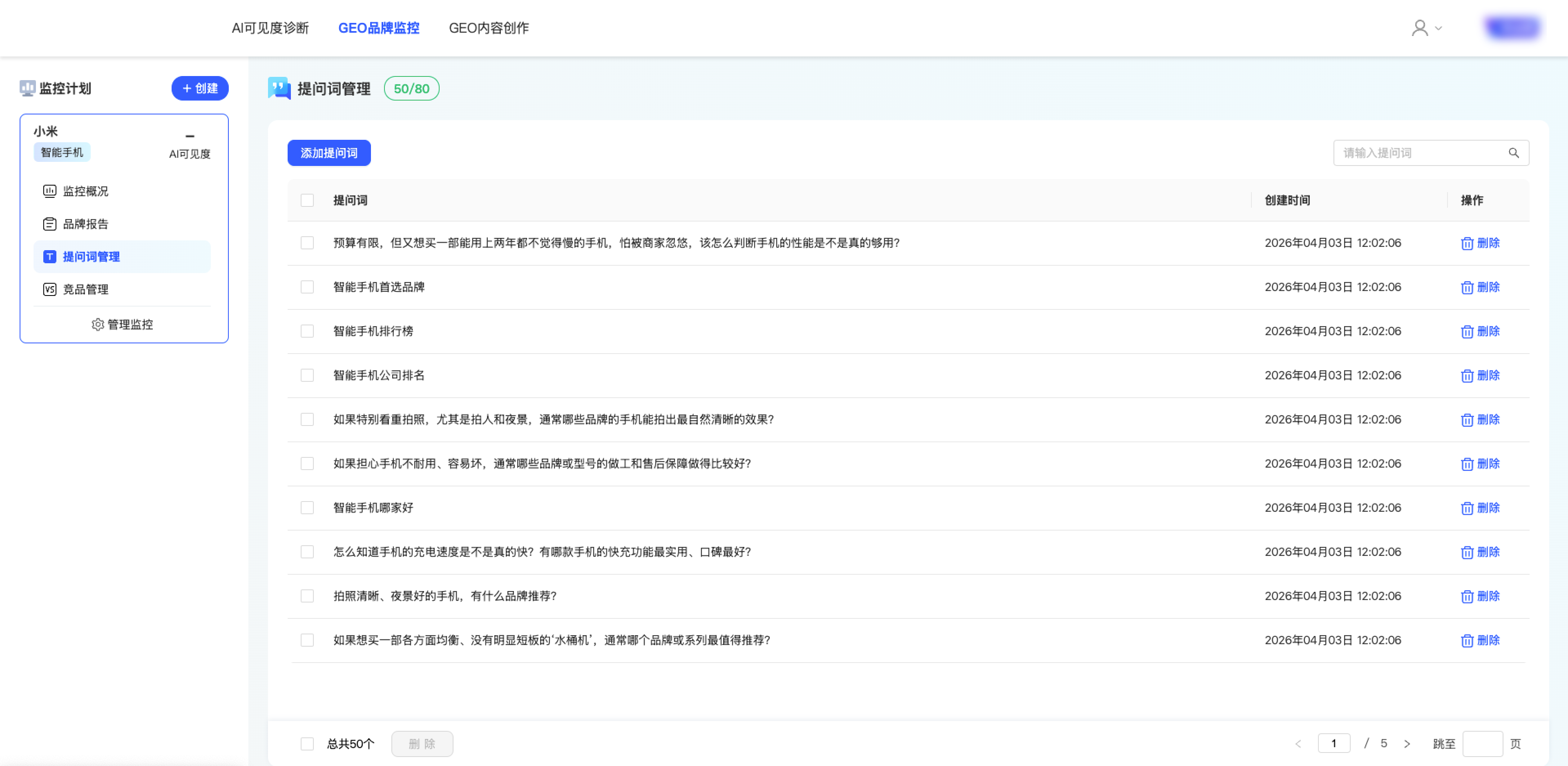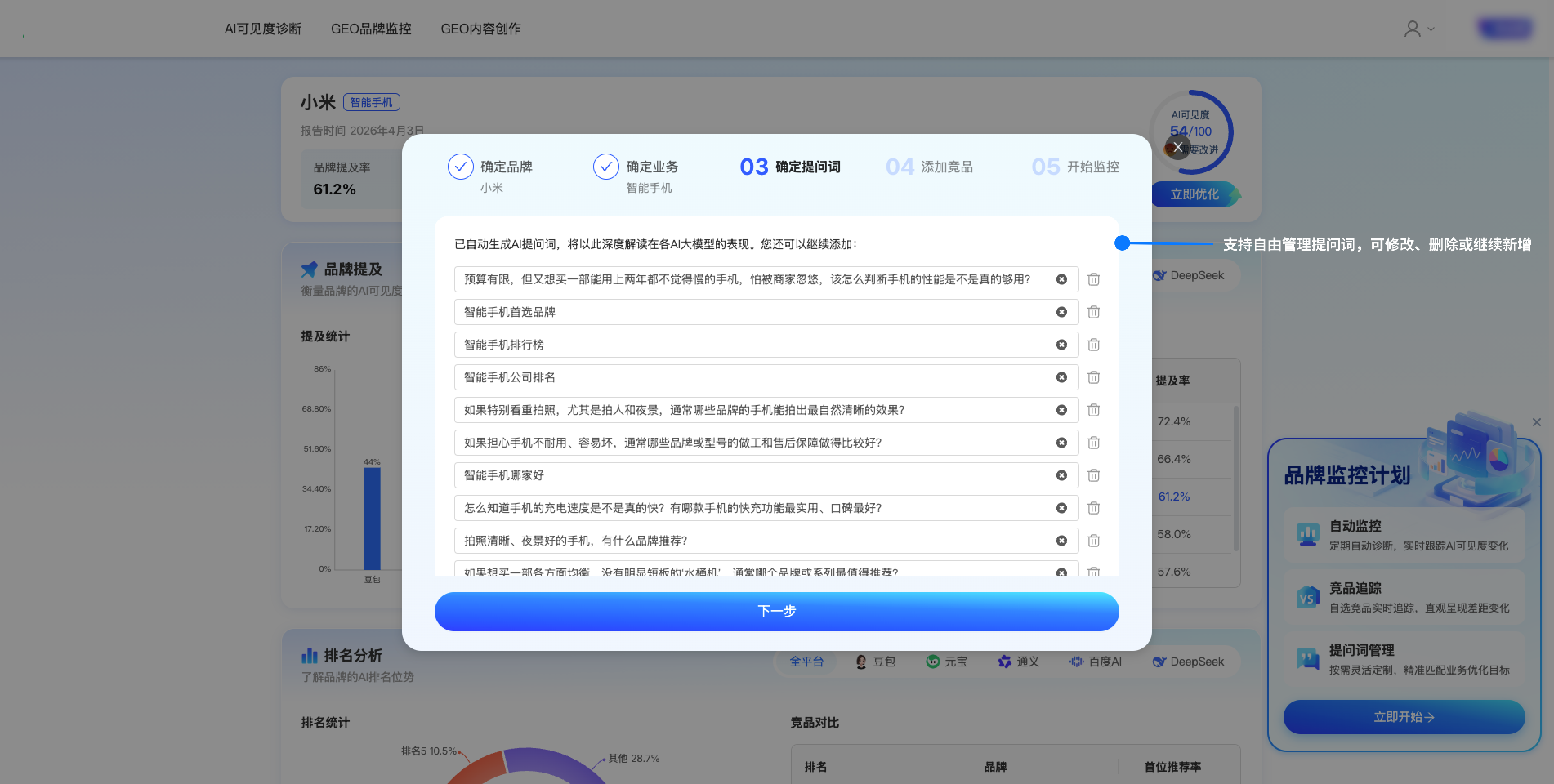 3. 提问词定制:按需灵活定制监控提问词,精准匹配企业业务场景,聚焦核心优化目标,提升监控针对性