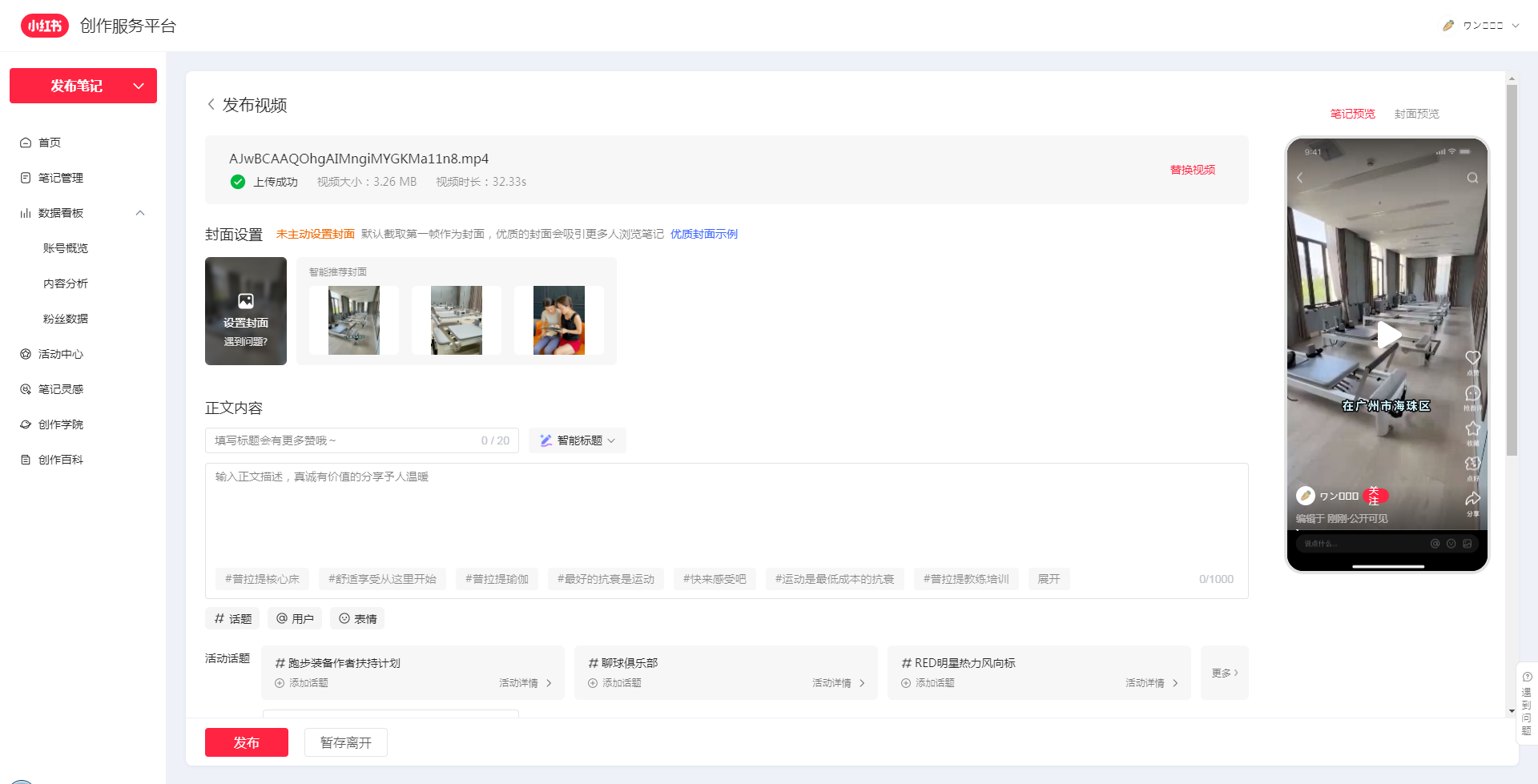 (2)上传刚刚下载的视频