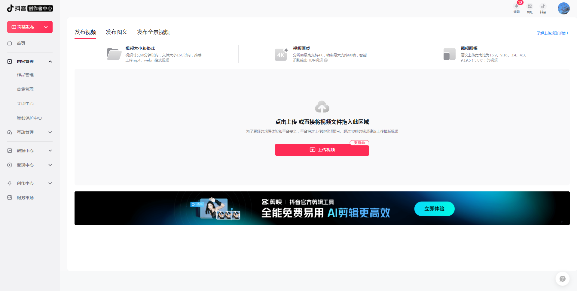 2、上传视频素材