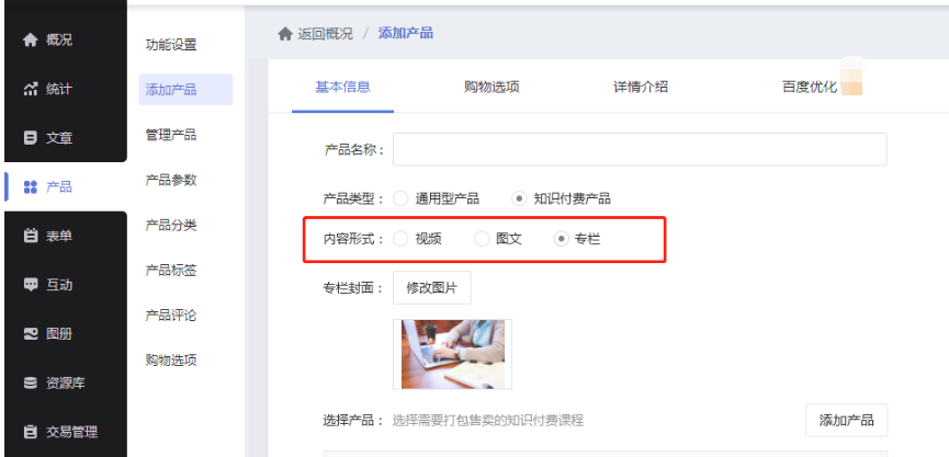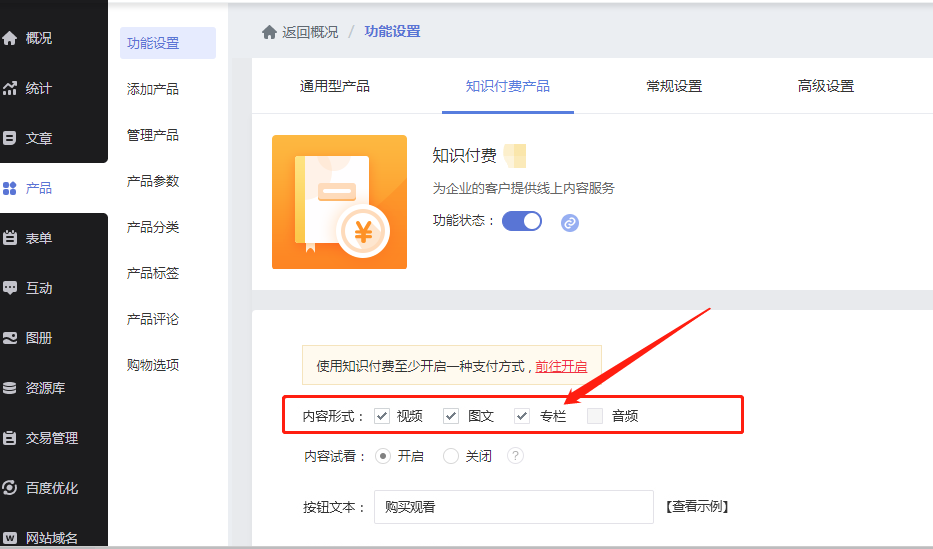 STEP 4:在网站上传线上课程资料(文章、音频、视频等),在后台开启知识付费功能,并添加相应的知识付费产品。