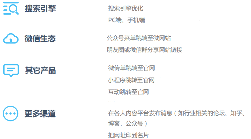 用户想获得信息,会直接在搜索引擎进行搜索,从搜索结果中进入企业的网站,或是公众号菜单栏等其他位置进入企业官网。