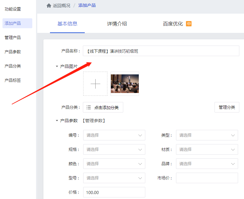STEP 1:在网站添加产品,填写线下课程的相关信息。