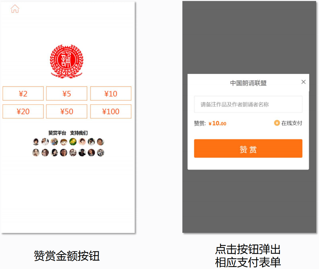 例如文章赞赏,在网站发布原创内容后,设置相应的赞赏金额按钮,用户点击按钮即弹出相应的支付表单,在线完成赞赏。